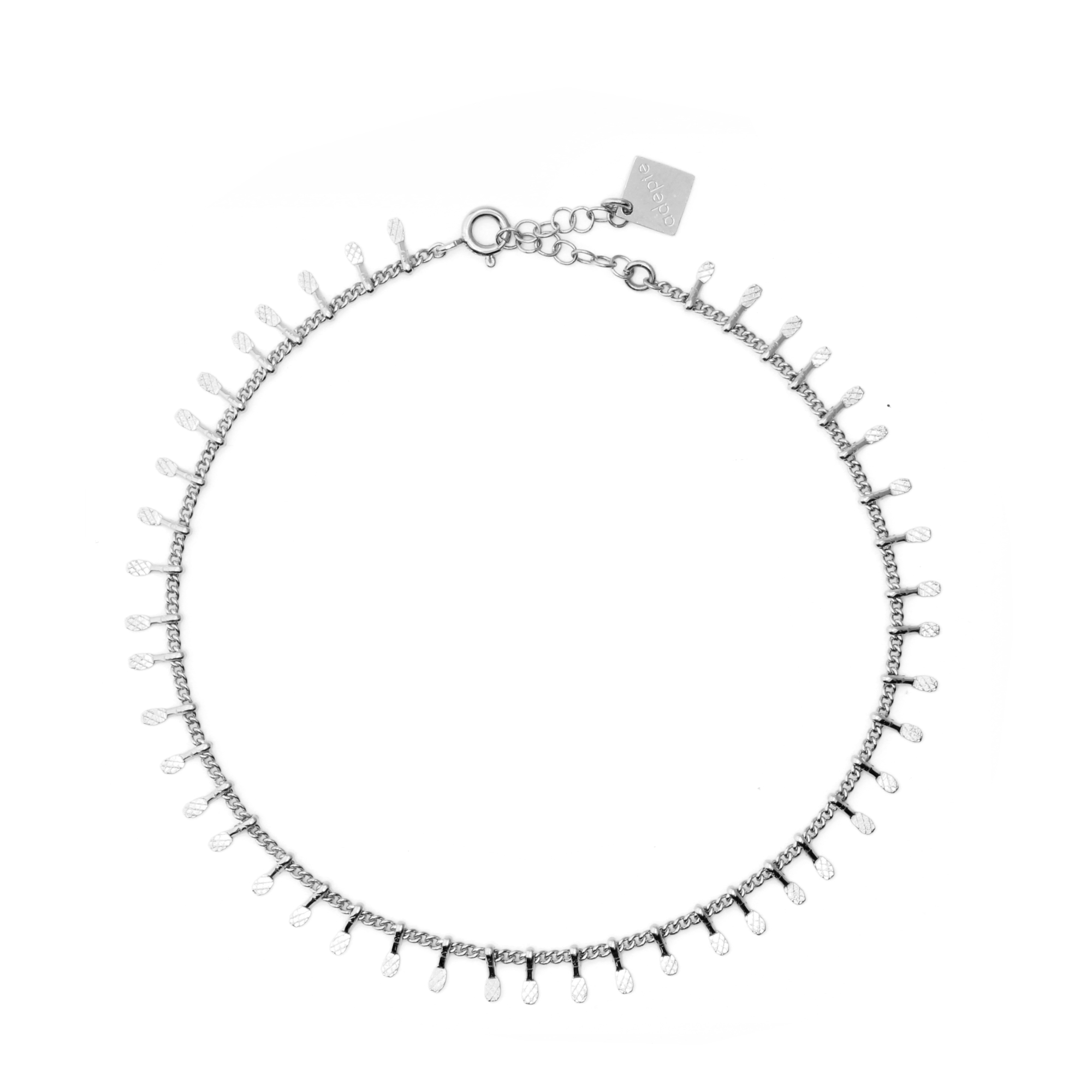 Chaîne de cheville Naples, composée d'une chaîne en plaqué argent et ornée de petites pampilles.