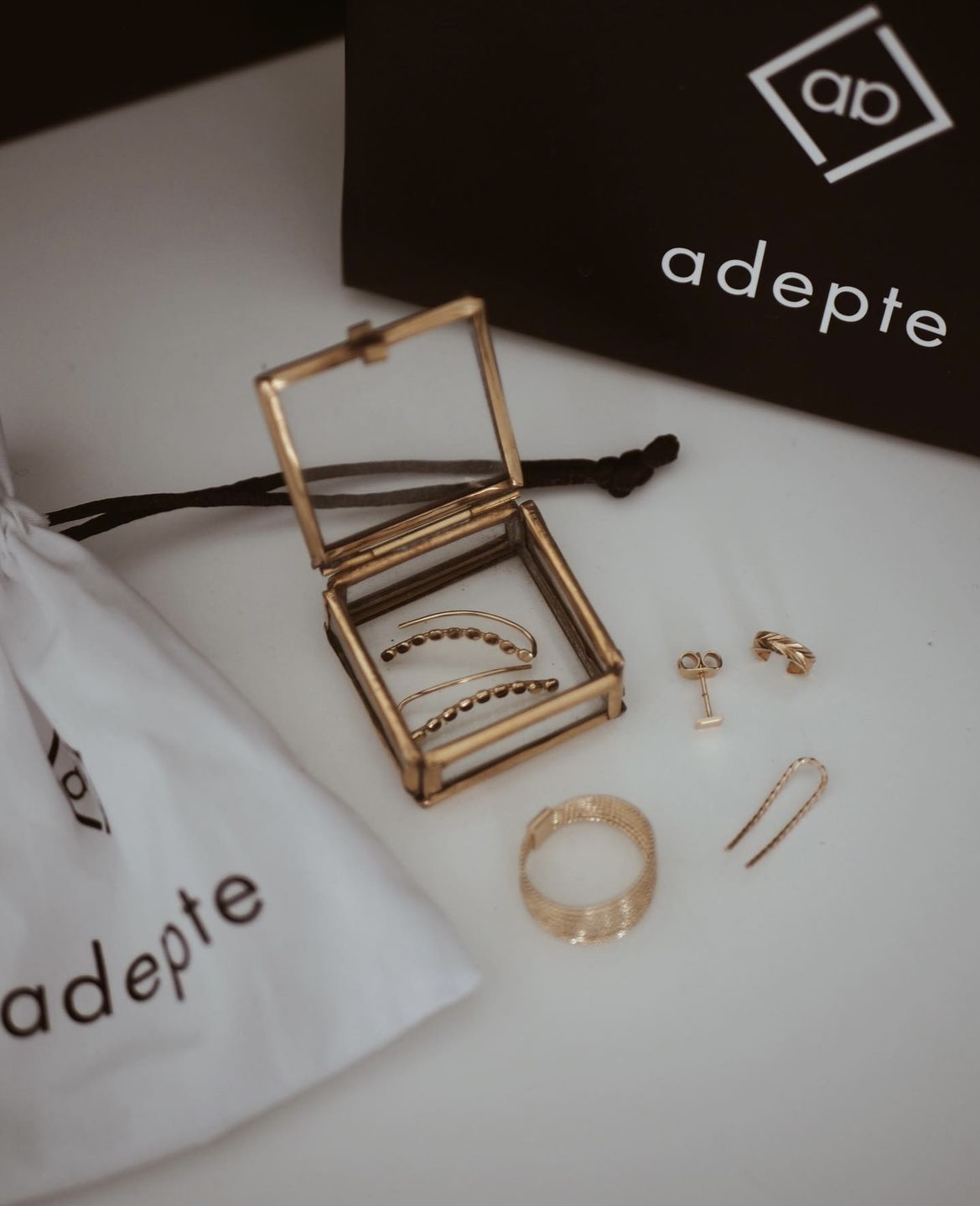 Les bijoux Adepte sont dorés à l’or fin, la dorure est garantie un an. Les bijoux Adepte ne doivent pas être mis en contact avec l’eau ou tout autre produit abrasif qui pourraient altérer la dorure ou le tissage.