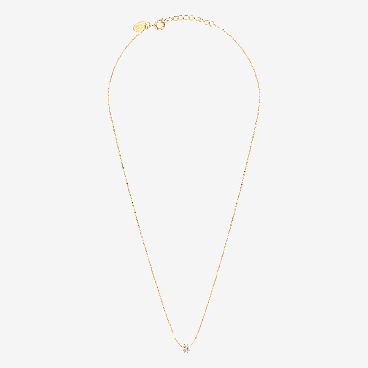 Le collier Bella Aya est composé d'une chaine avec un élément de fleur serti d’oxydes de zirconium blancs.