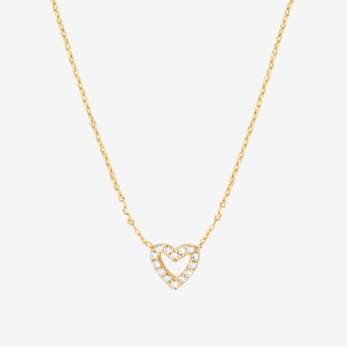 Le collier Bella Mina est composé d'une chaine avec un petit coeur serti d’oxydes de zirconium blancs.