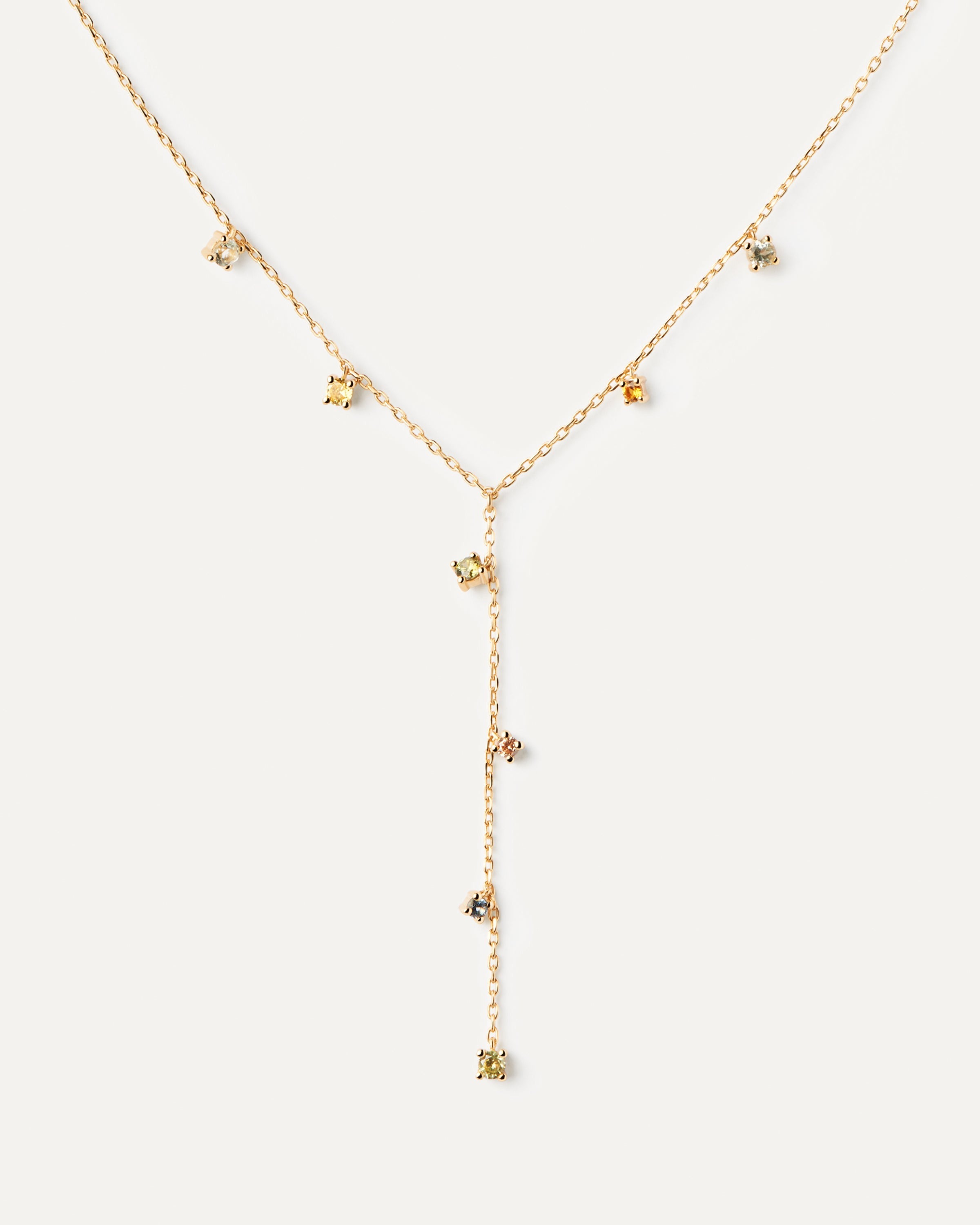 Le collier Jane est un collier avec un pendant, ornés de zirconium olive et pêche.