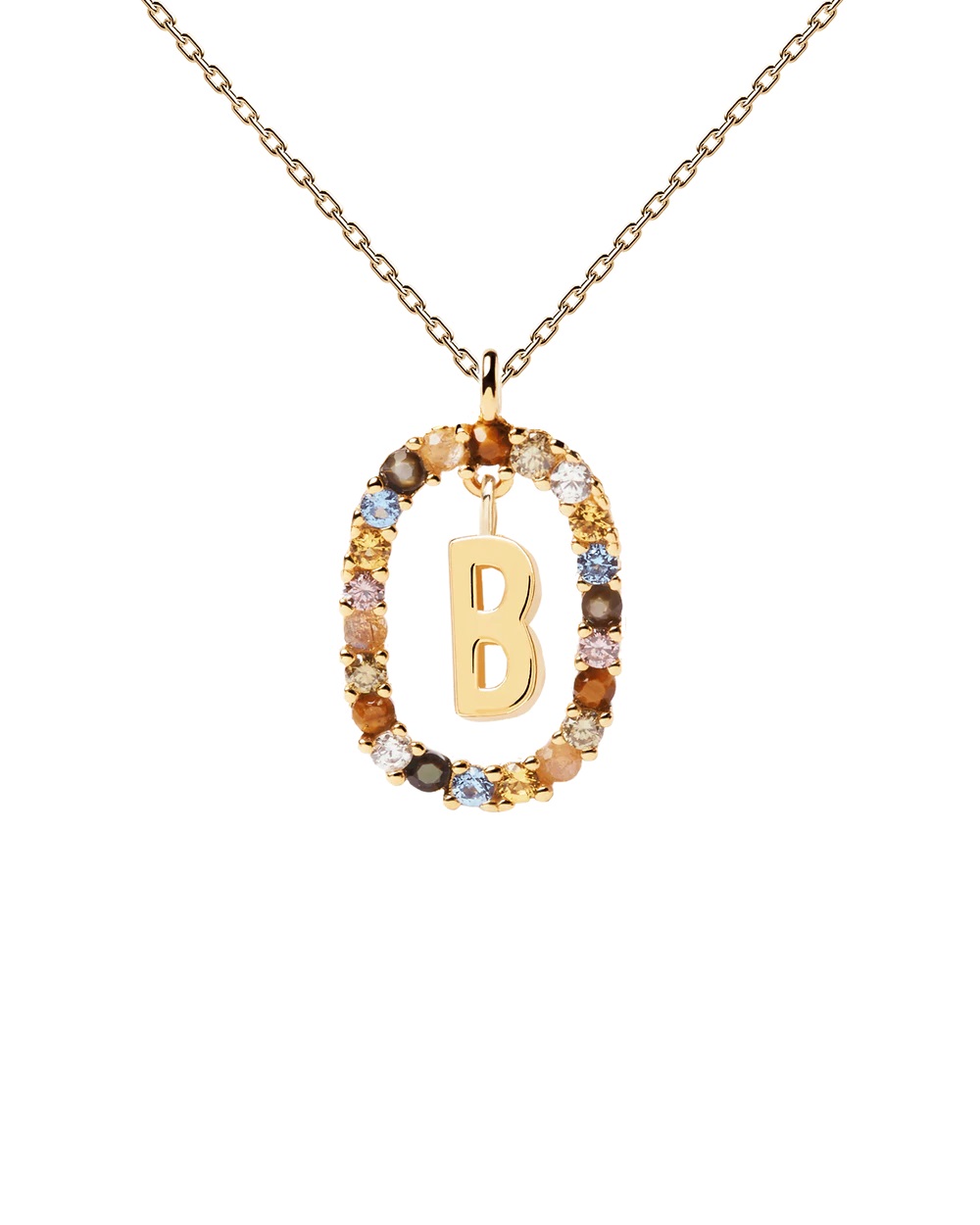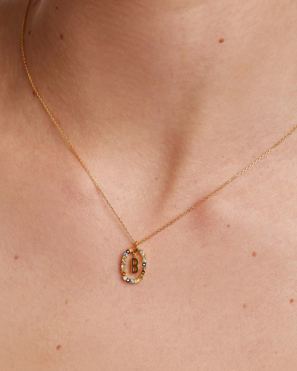 Collier lettre ovale B en argent 925 doré à l'or fin 18K. La collection Lettres célèbre le caractère et la beauté unique de chaque femme.