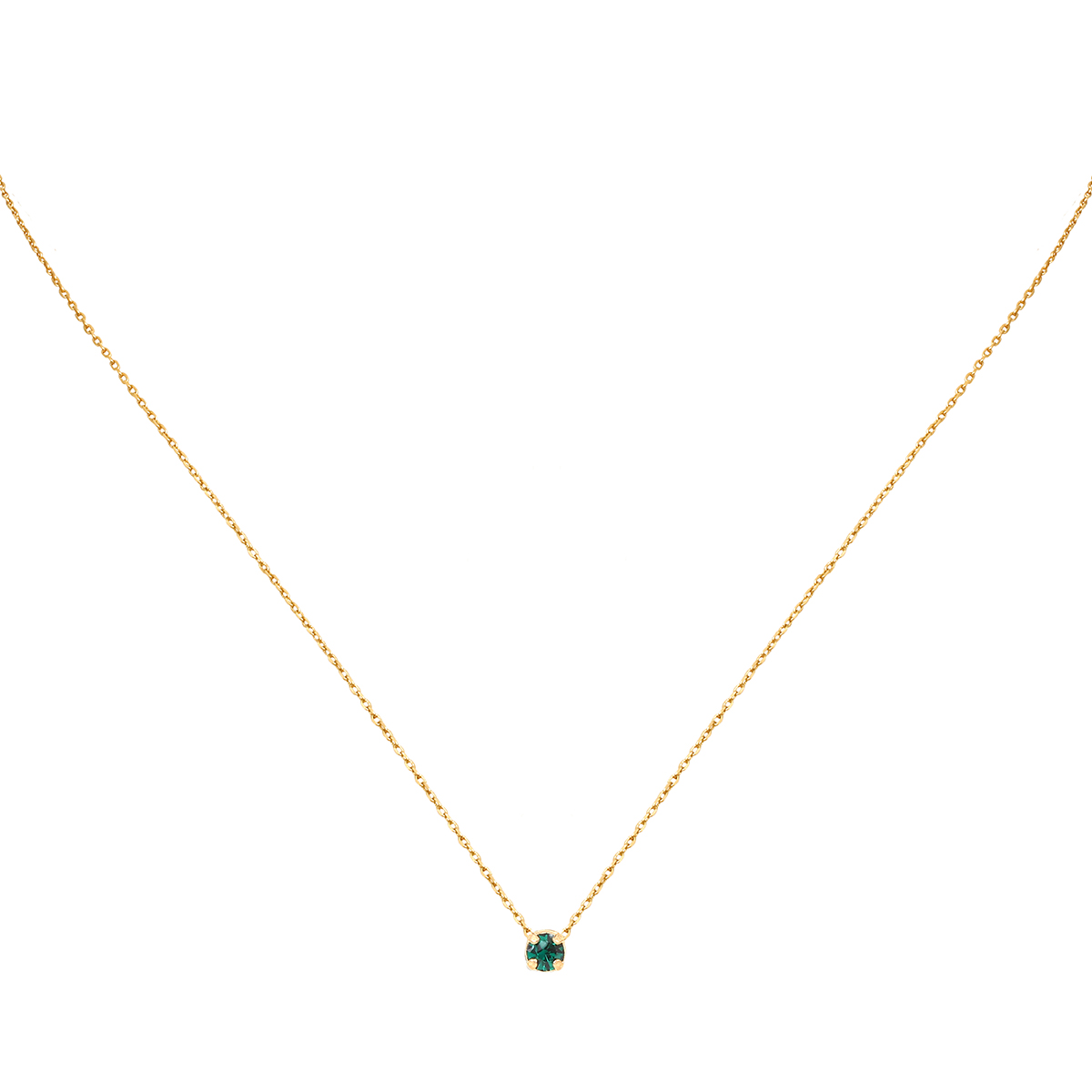Il est composé d'une chaine fine et d'un petit pendentif rond avec un zirconium emeraude