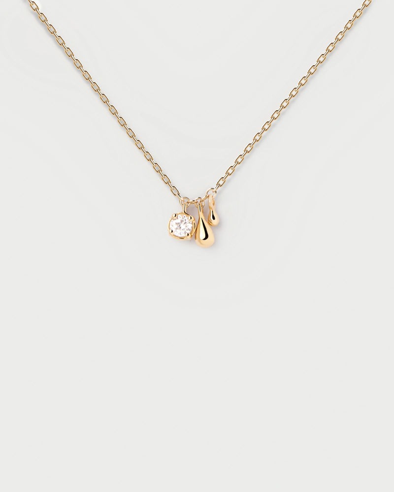 Collier en argent plaqué or avec un pendentif de zircon blanc et deux de gouttes