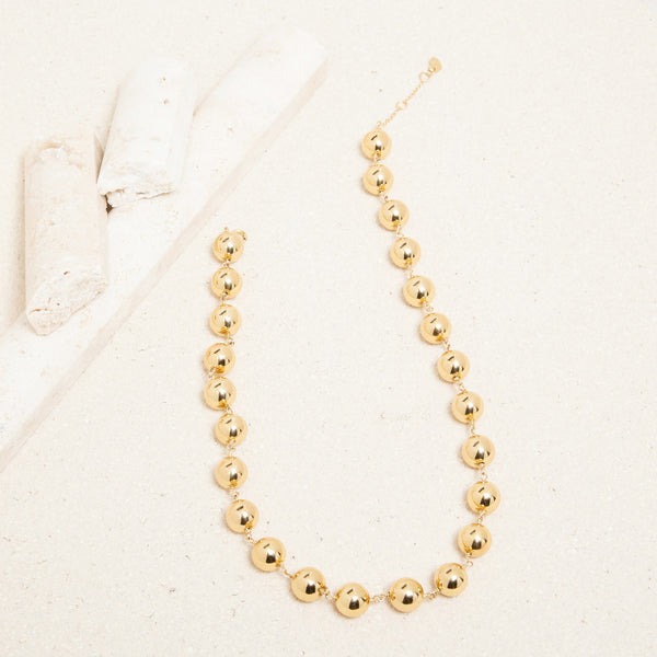 Longueur totale ajustable : 42 cm - diamètre des perles 1cm.