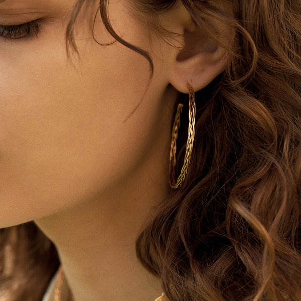 Paire de boucles d’oreilles créoles dorées à l’or fin
