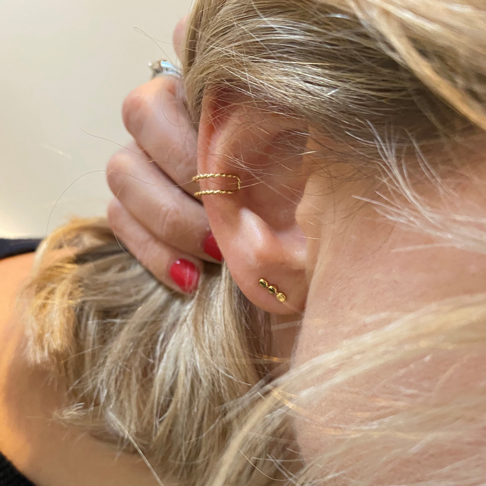 Il se positionne au creux de l'oreille et ne nécessite aucun trou.