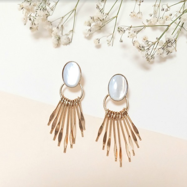 Boucles d'oreilles Pierre et Griffe nacre blanche