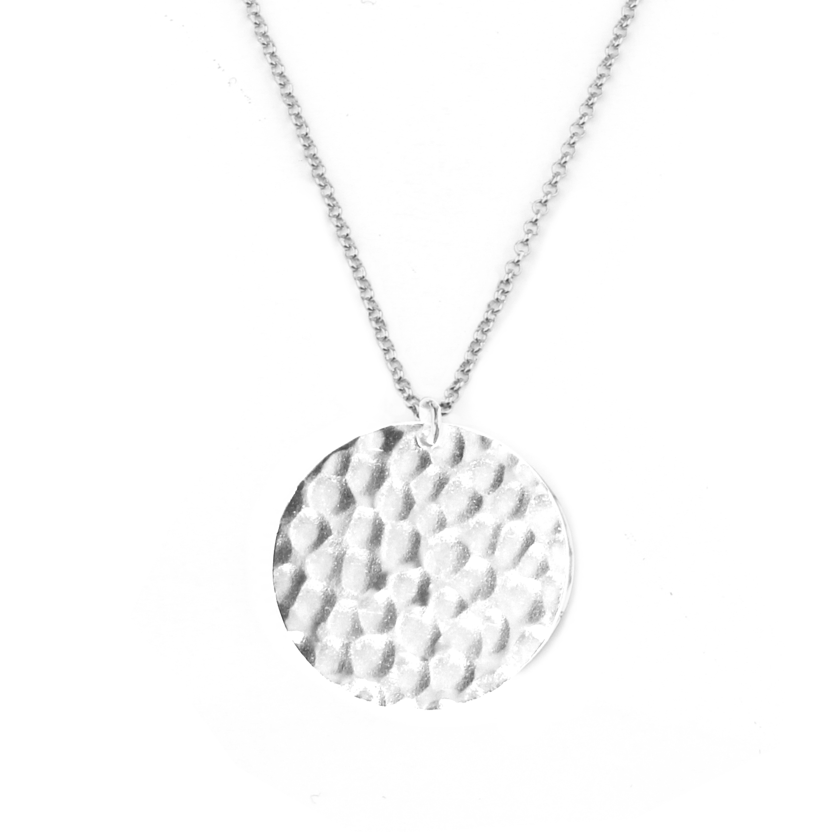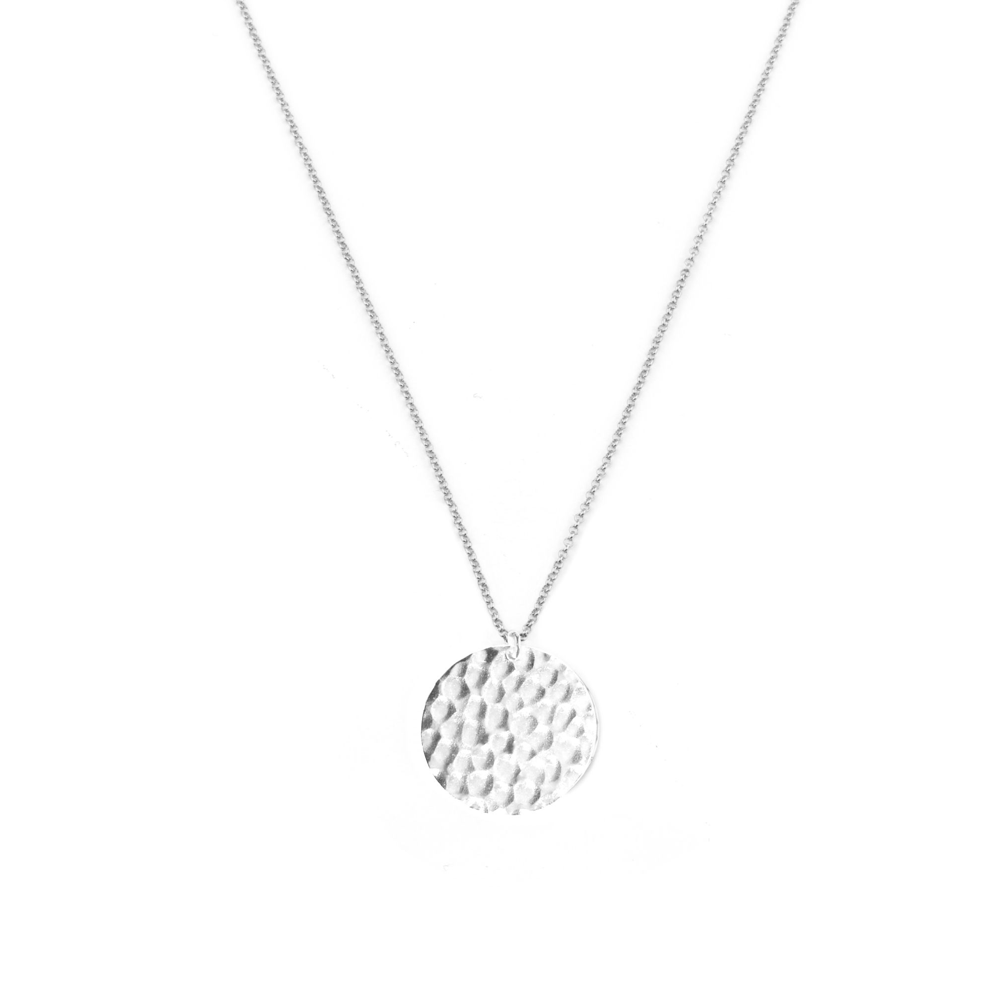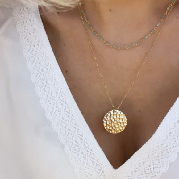 Grand collier Syracuse. Composé d'une chaîne dorée à l'or fin et d'une pastille martelée.