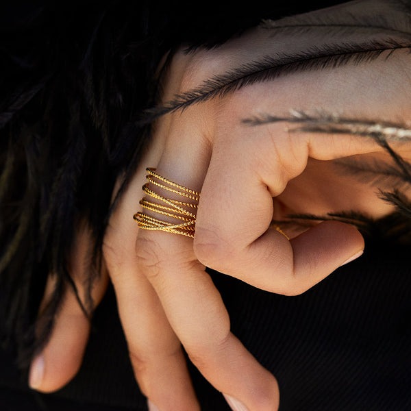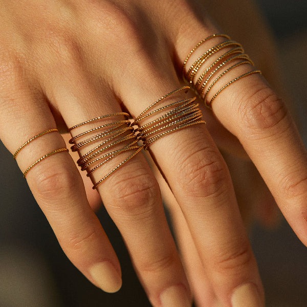 La Bague Freyja est une bague semainier, composée de plusieurs anneaux plaqué or.