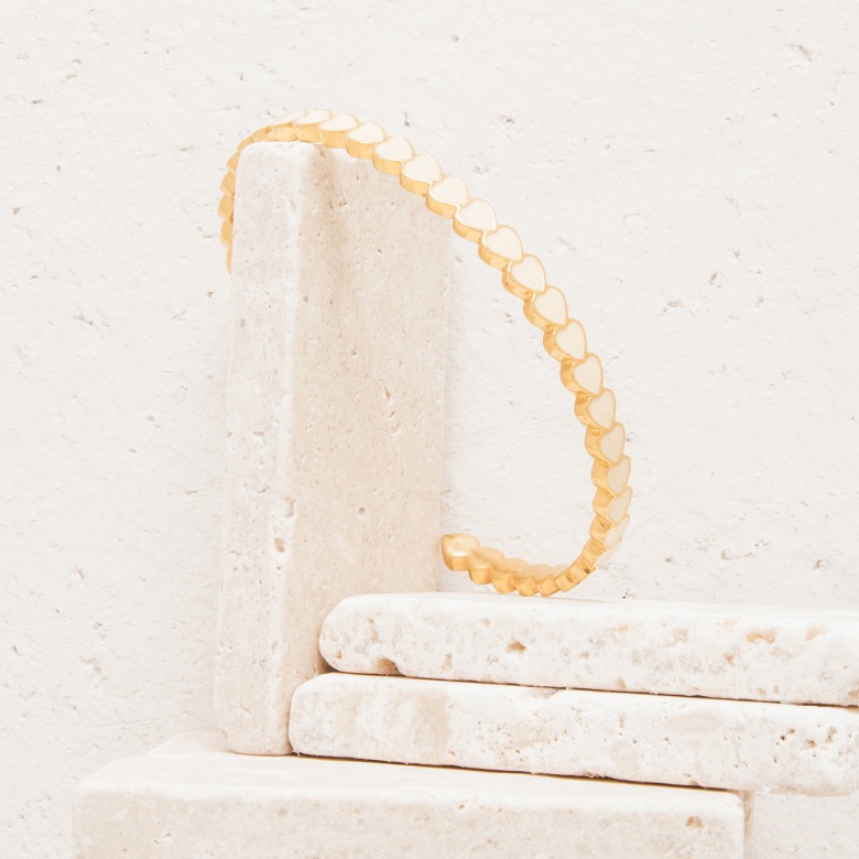 Détail avec des coeurs émaillés de couleur écru.