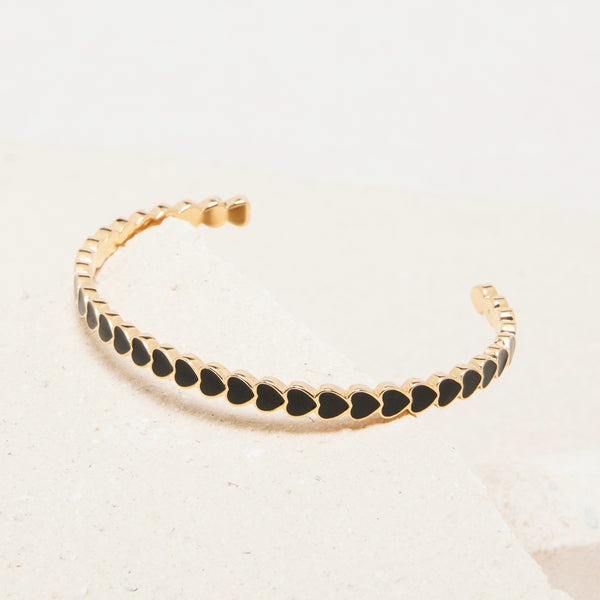 Jonc fin et ouvrant, anneau plat avec minis coeurs émaillés.