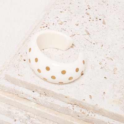 Jonc manchette ouvert en acétate avec pois dorés incrustés.