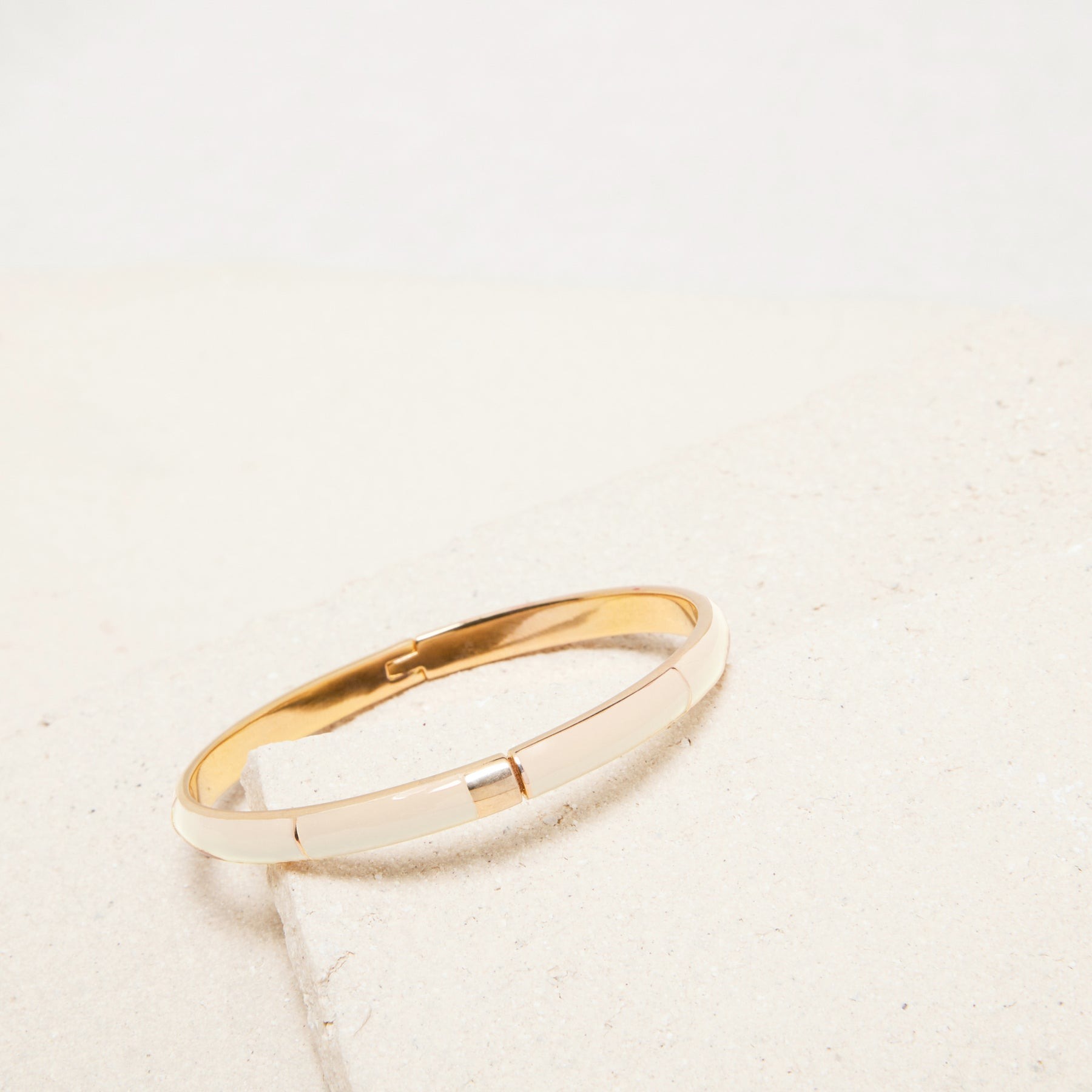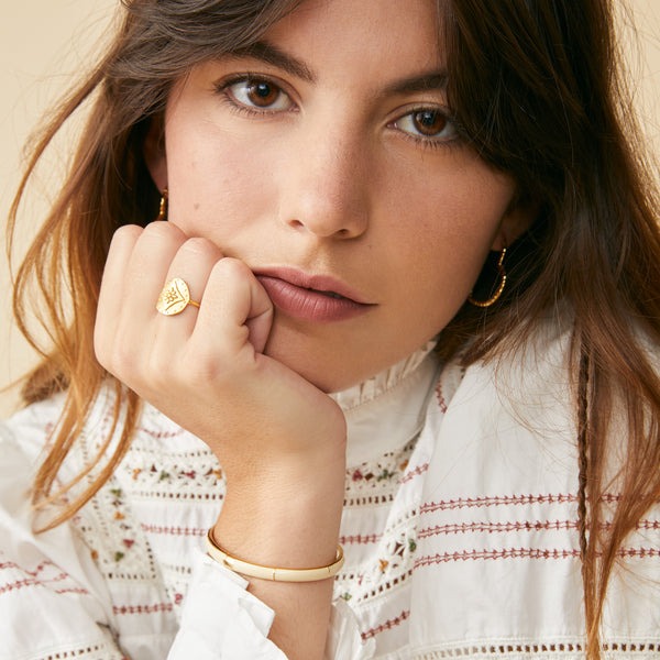 Jonc fin et ouvrant, anneau plat esprit bambou Finition brossée.