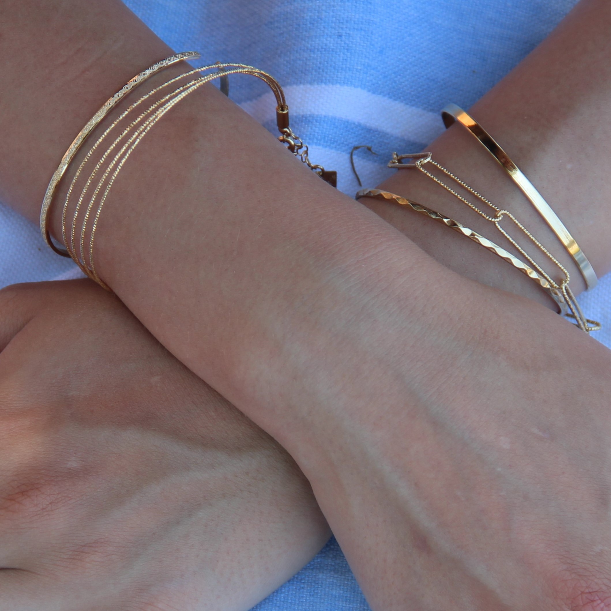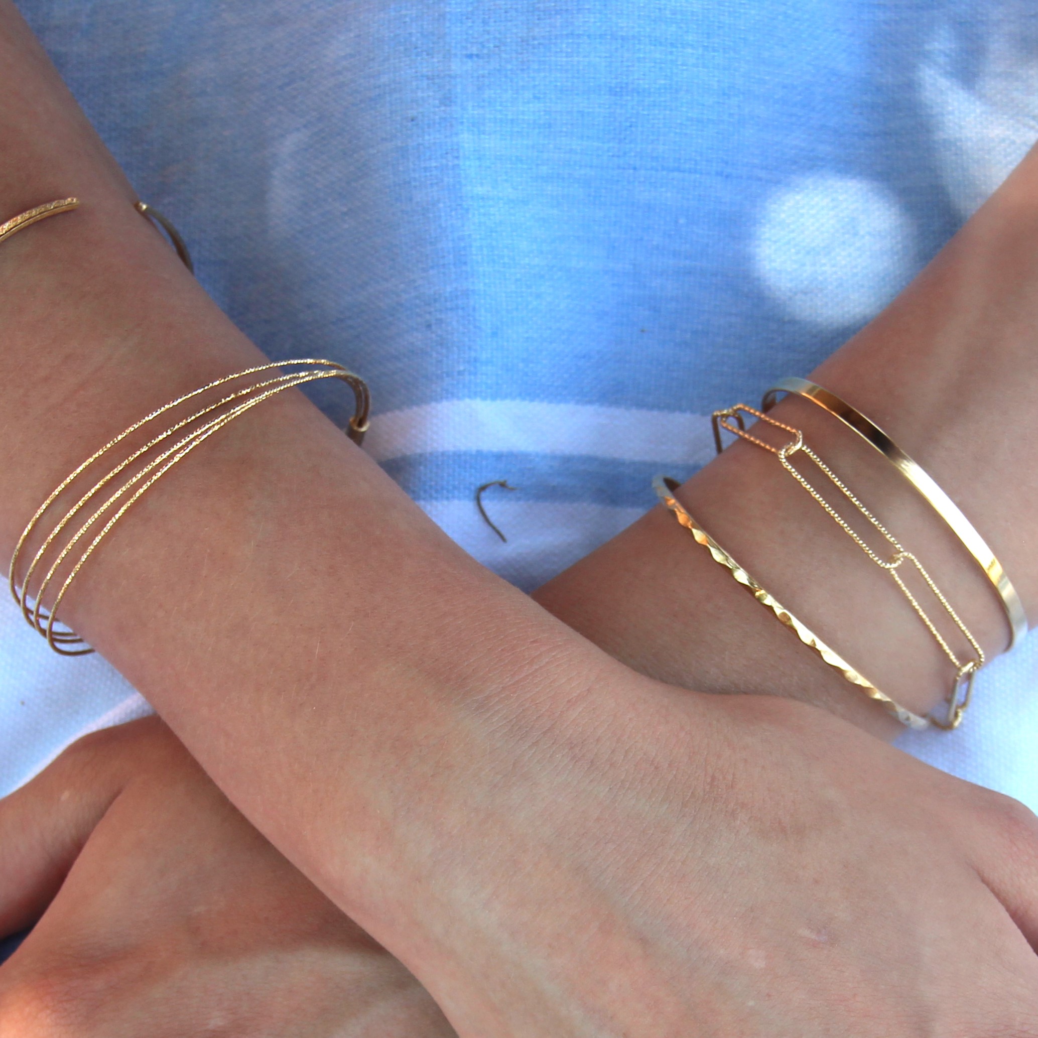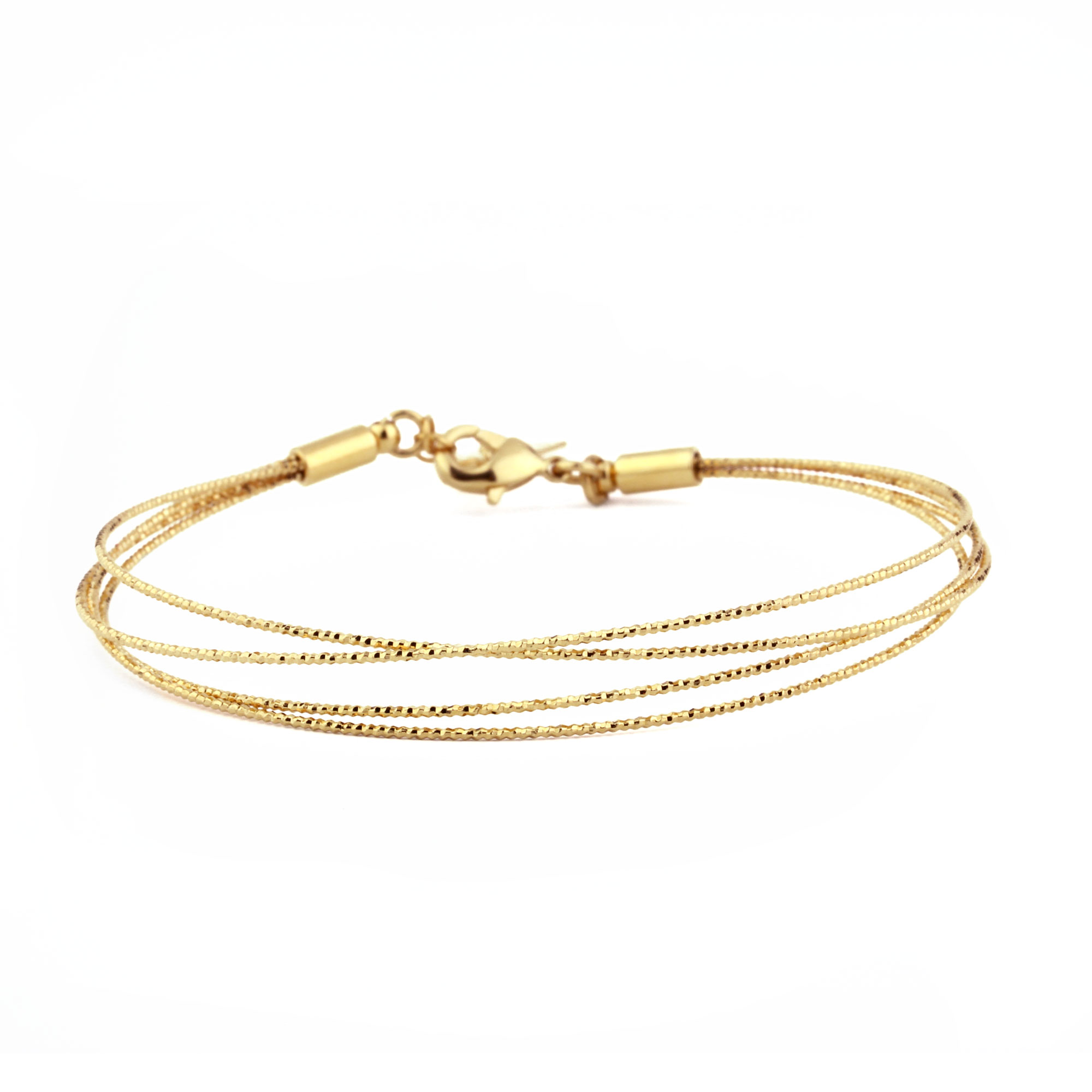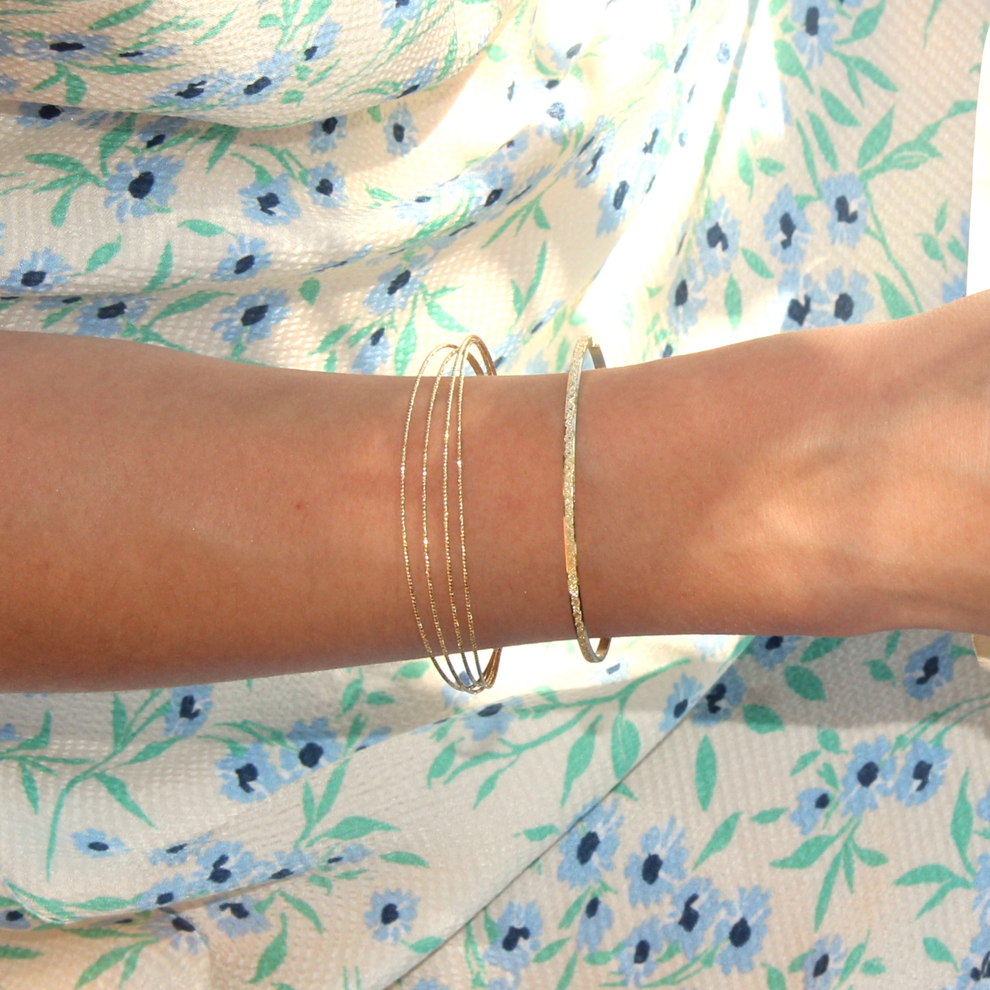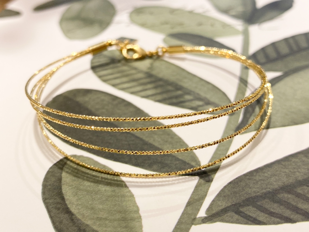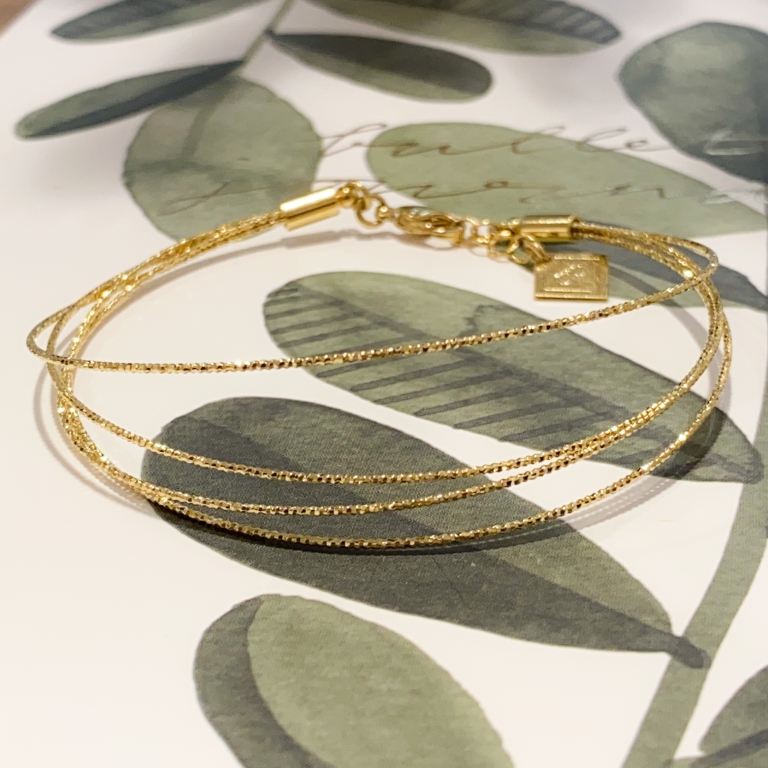 Le jonc Sophie doré à l'or fin est composé de 4 joncs très fins diamantés reliés ensembles.