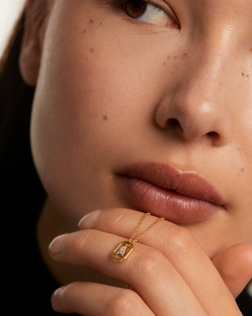 En argent sterling plaqué d’or 18 K, les lettres sont uniques grâce à leur fabrication soignée : des zircons glacés premium sertis dans des griffes plaquées en rhodium pour un aspect final d’un éclat uniforme.