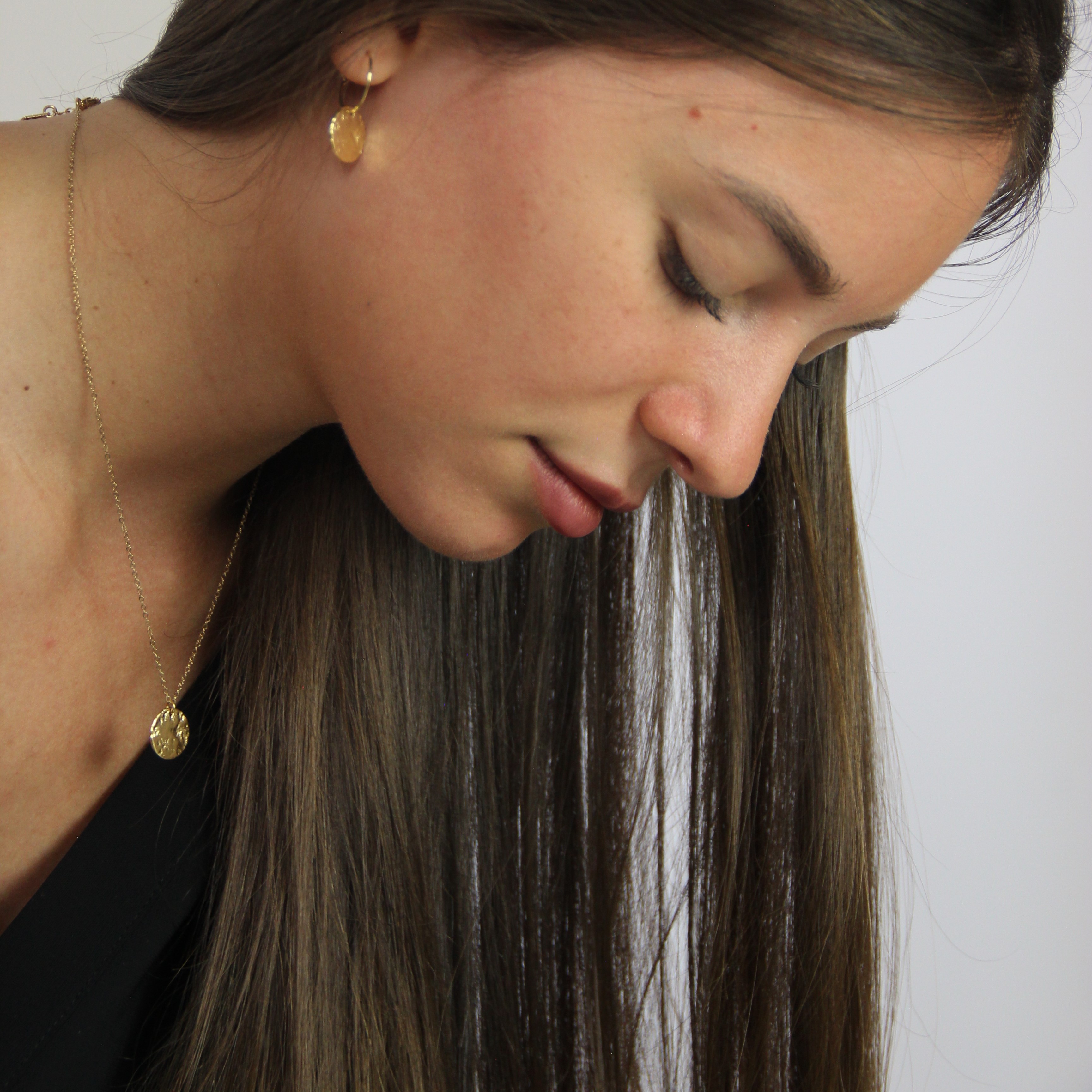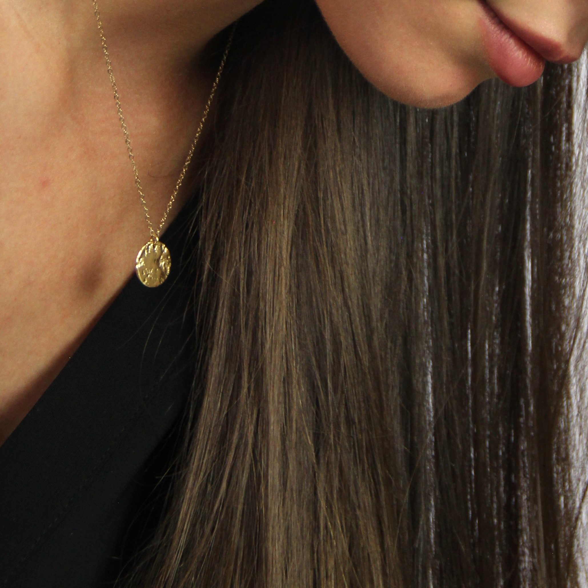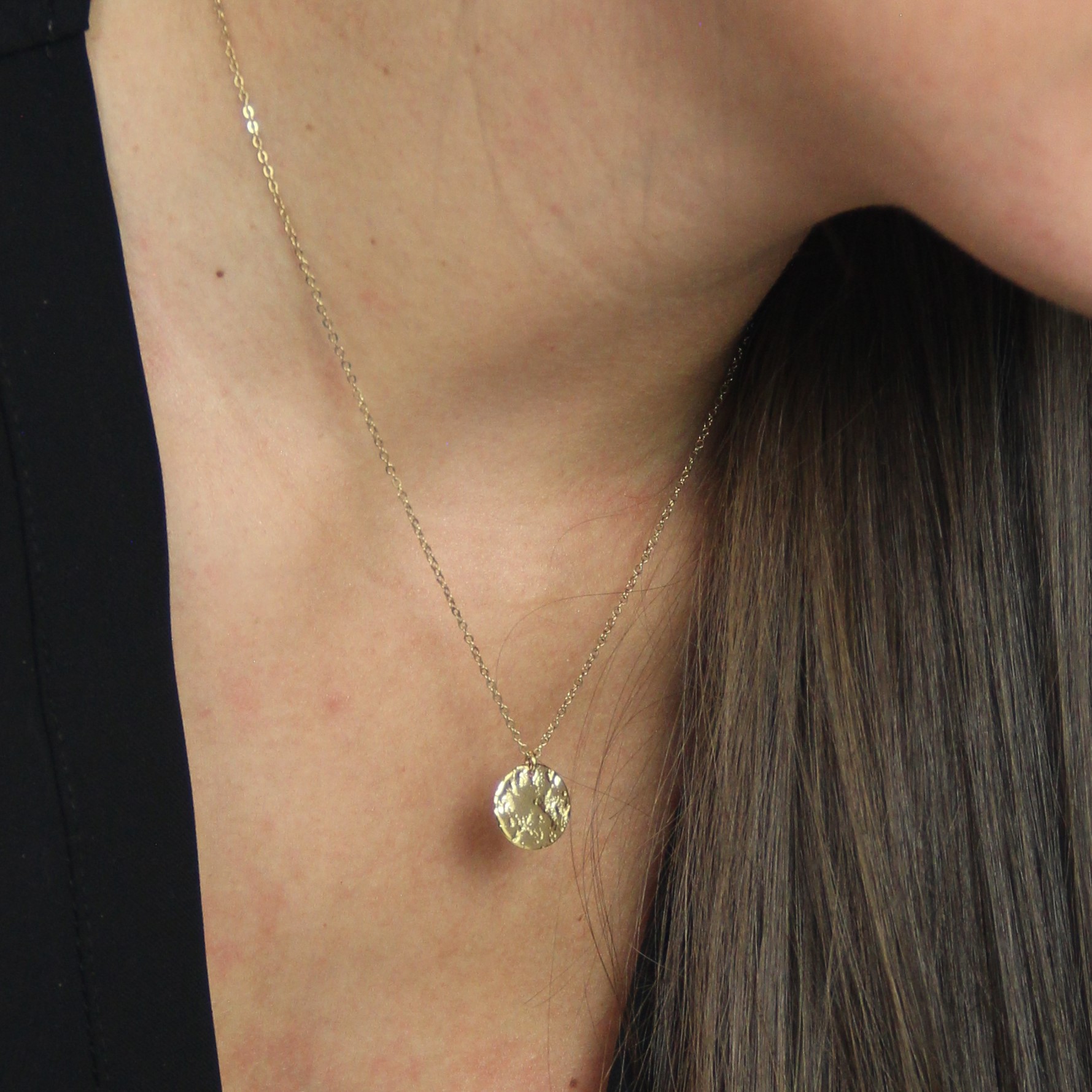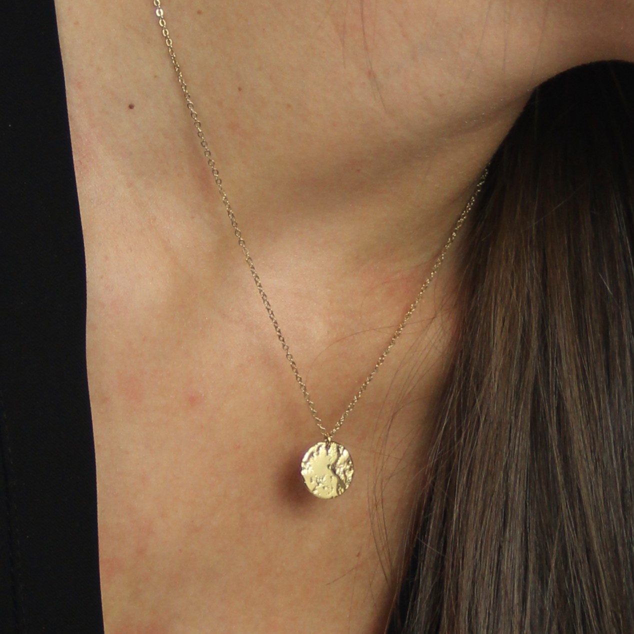 Ce bijou est personnalisableLe petit collier Moon est composé d'une chaîne dorée à l'or fin et d'une pastille martelée.