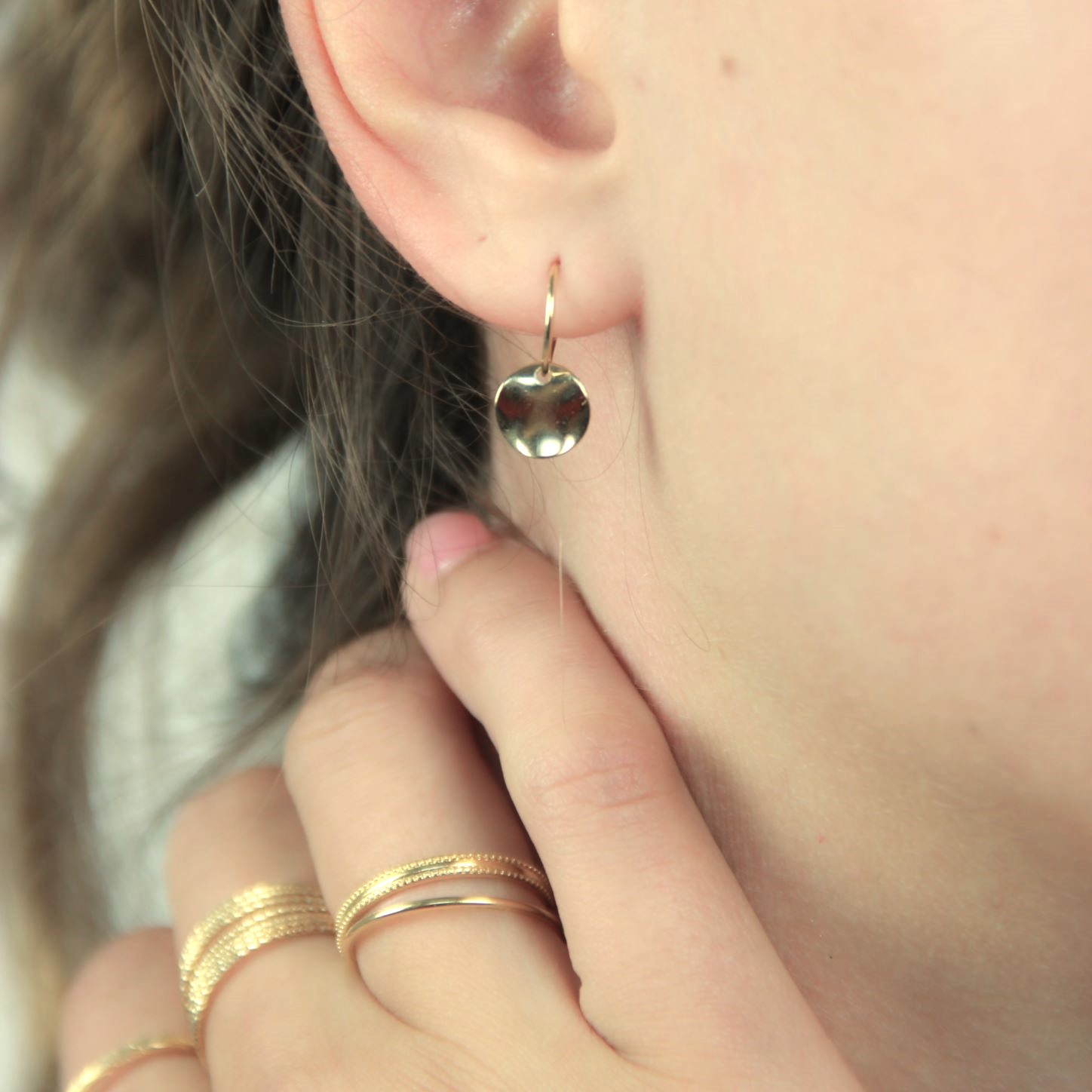 Les petites créoles Belharra sont composées d'un anneau auquel est suspendu une petite pastille dorée à l'or fin.