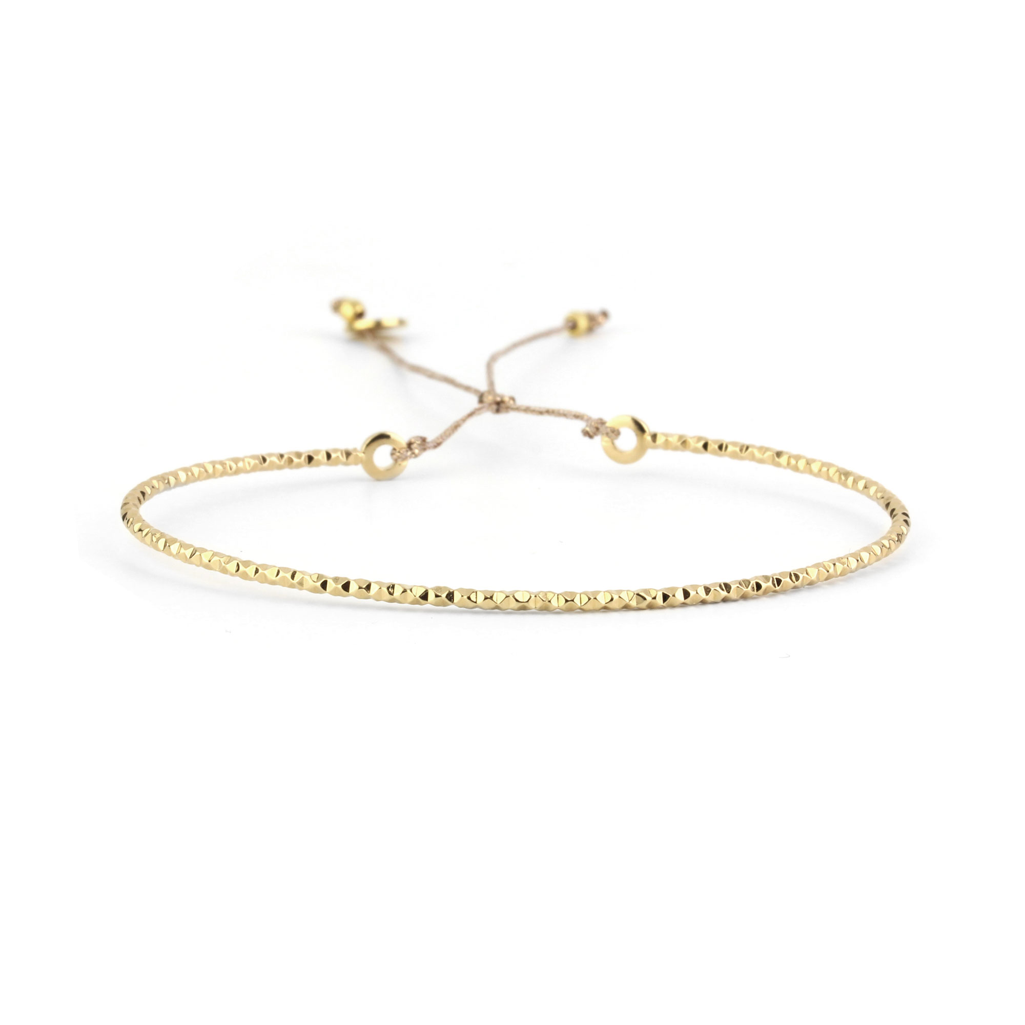 Bracelet jonc diamanté plaqué or. Il s'ajuste grace à un fil de Lurex qui permet de ressèrer le jonc. Il convient parfaitement au petit poignet.
